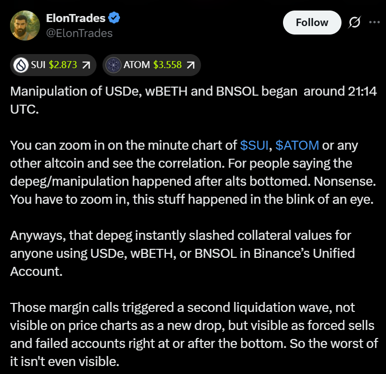 В денежном выражении пятничный резкий спад стал крупнейшим событием ликвидации в истории криптовалют, превзойдя даже крах FTX, с ликвидацией позиций примерно на 19 миллиардов долларов в краткосрочных инвестициях. Bitcoin (BTC) оказался относительно устойчивым по сравнению с альткоинами, которые понесли более значительные потери от пика до минимума.