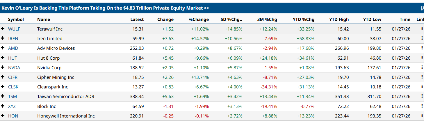 За последние 24 часа ряд крупных майнеров показал двузначный рост: TeraWulf прибавила около 11%, Iren Limited — примерно 14%, Cipher Mining — около 13%.