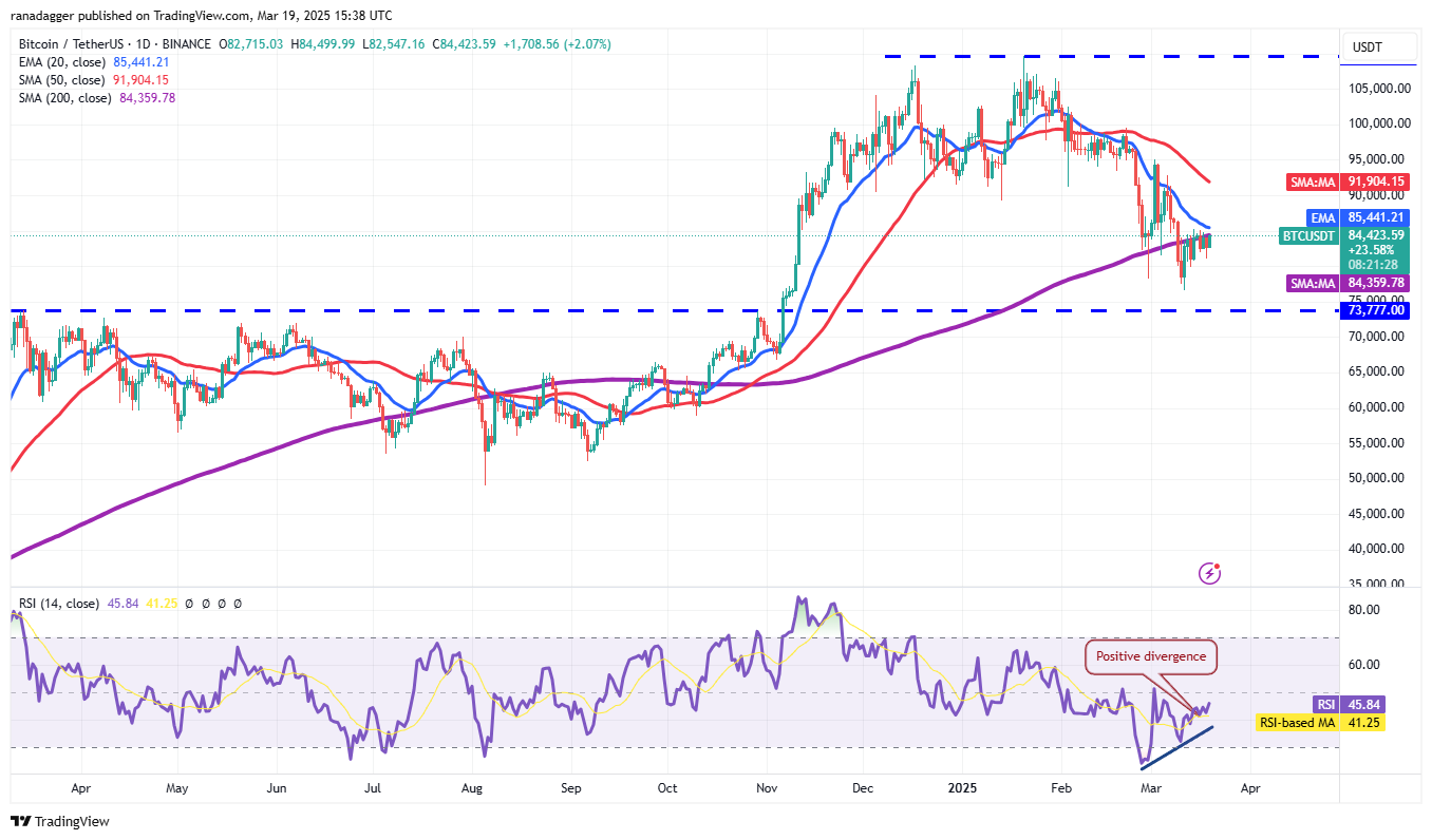 Бычья динамика может усилиться при прорыве и закрытии выше 20-дневной экспоненциальной скользящей средней ($85,441). Пара BTC/USDT затем может подняться до 50-дневной SMA ($91,904).