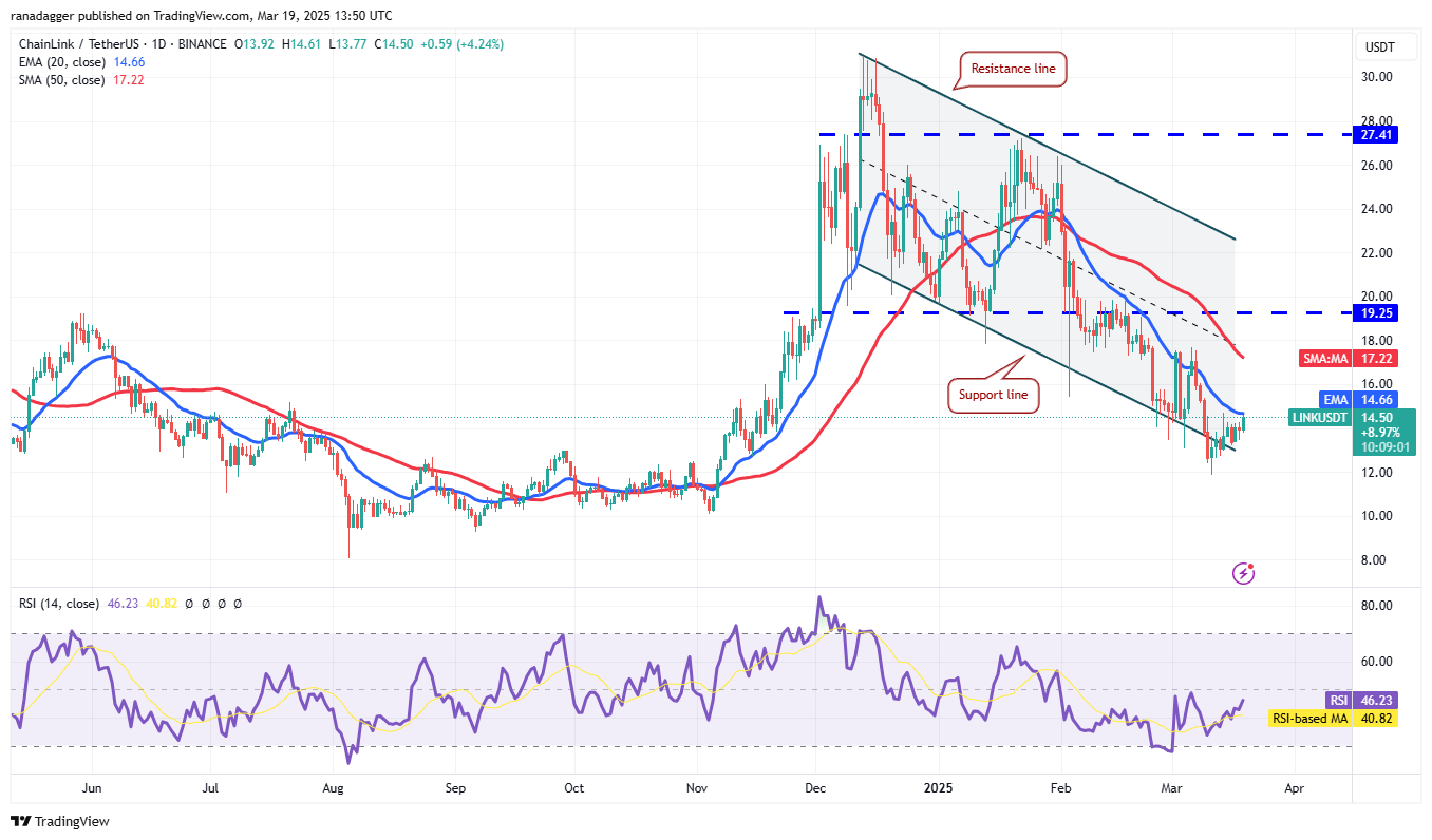 Chainlink (LINK) достигла 20-дневной EMA ($14.66), но быки встречают значительное сопротивление со стороны медведей.