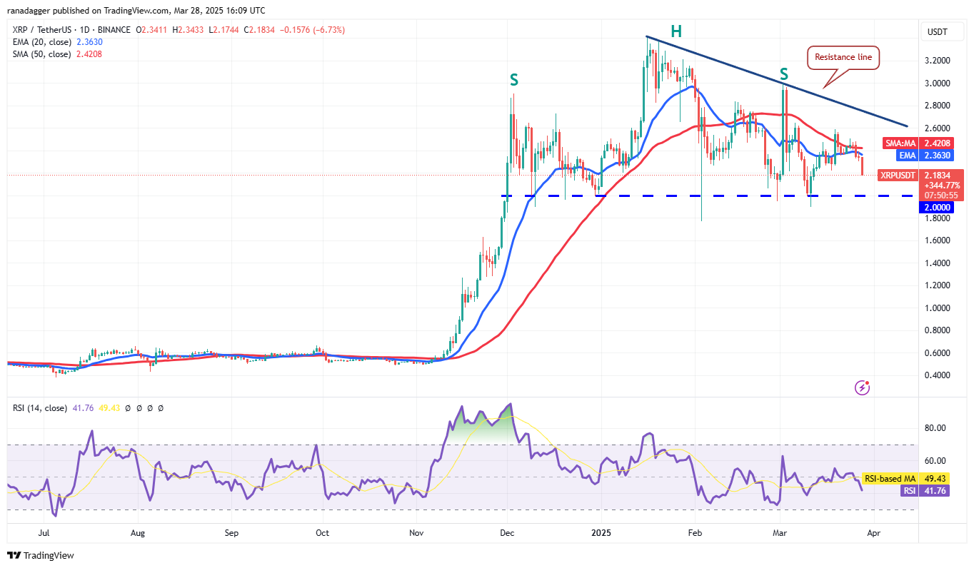 Solana (SOL) пробила 20-дневную EMA ($136) 28 марта, что указывает на отсутствие спроса со стороны быков.