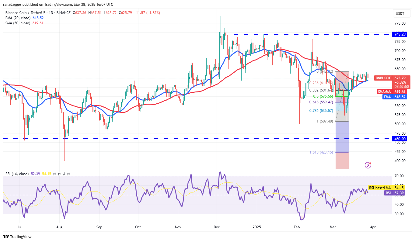 BNB (BNB) торгуется между скользящими средними и сопротивлением на уровне $644 последние несколько дней.