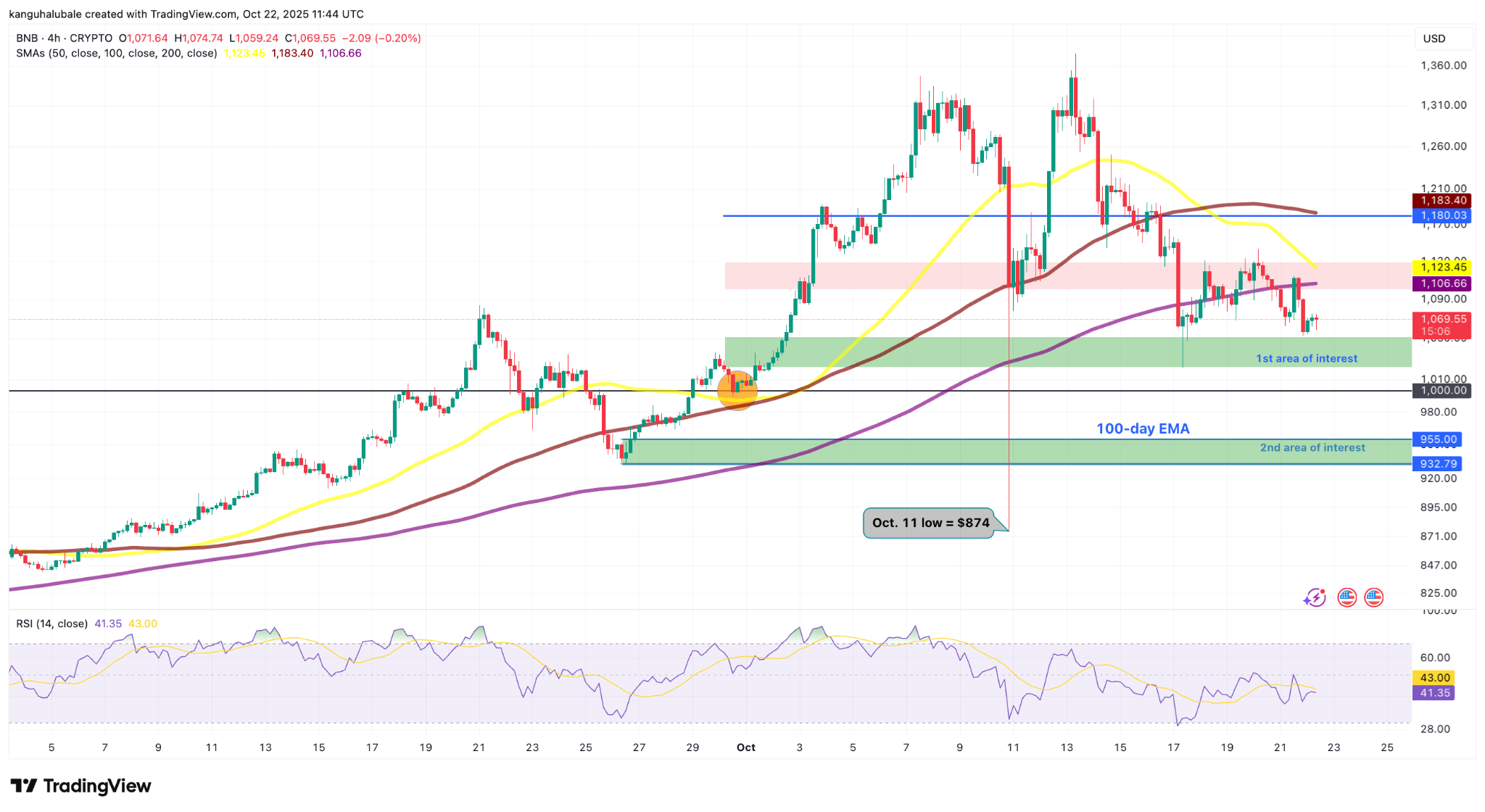 “$BNB держится крепко вокруг зоны поддержки $1,060 после недавнего падения,” сказал аналитик BlockchainBaller во вторник в посте на X.