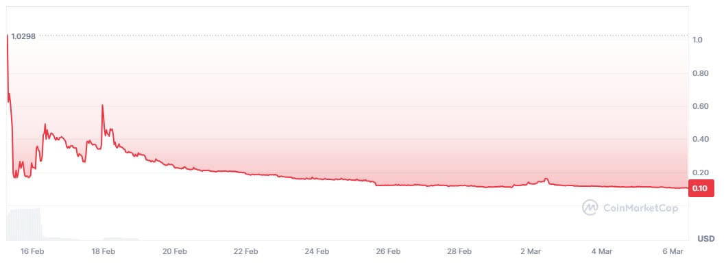 Цена LIBRA обвалилась до $0.10. Источник: CoinMarketCap