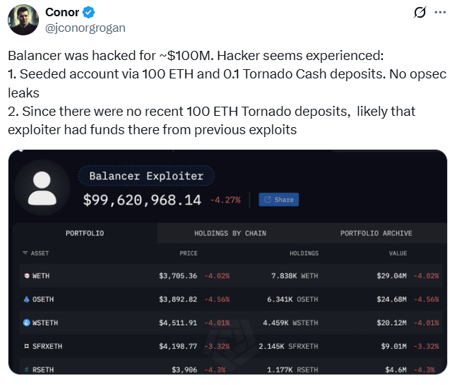 По данным нового анализа, транзакции на блокчейне от лица, совершившего взлом Balancer на сумму 116 миллионов долларов, указывают на сложный характер атаки и длительную подготовку, которая могла занять несколько месяцев.