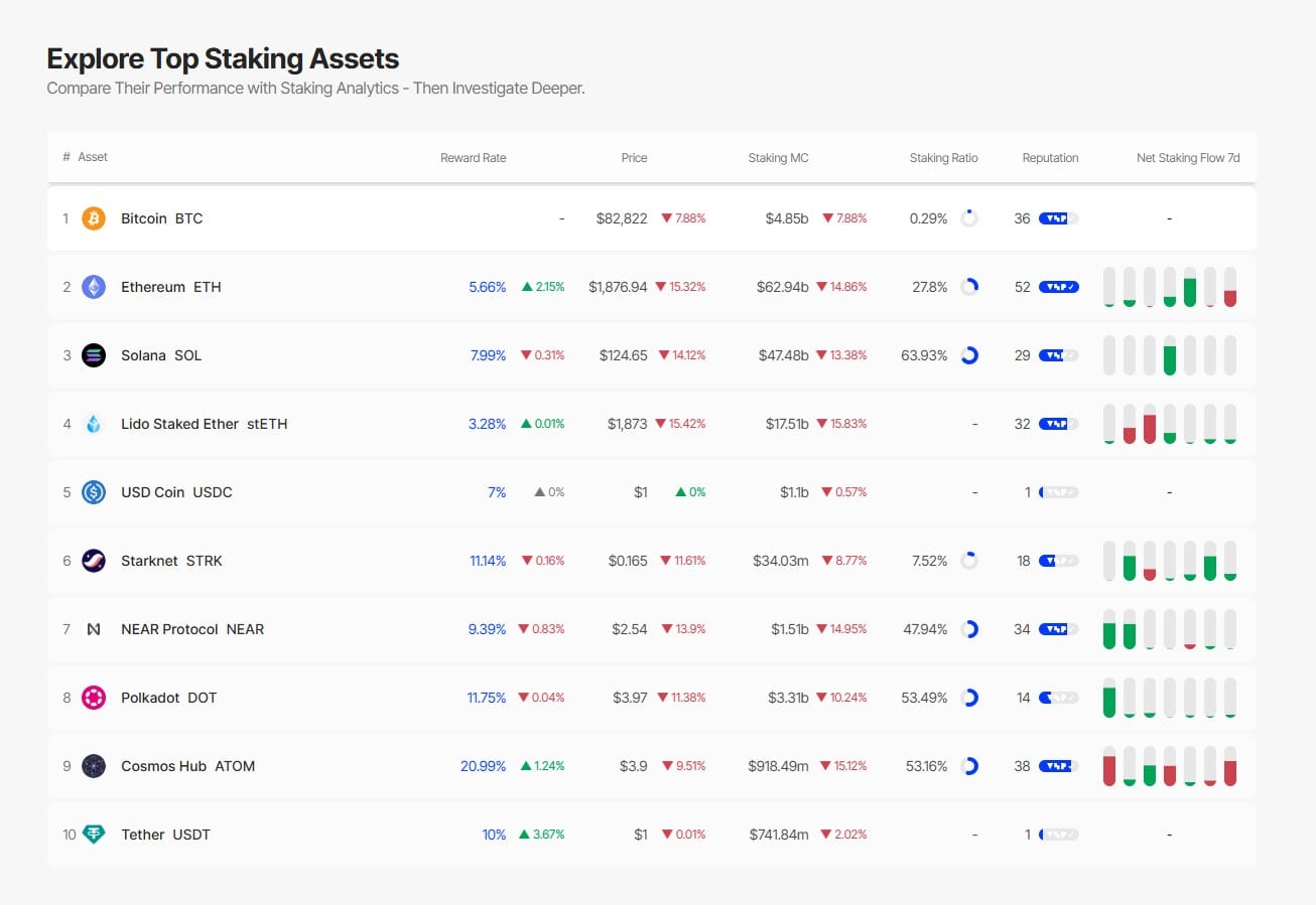 По данным на 12 марта, стейкеры Ether зарабатывают примерно 5.5% годовых, а стейкеры Solana — около 8%, согласно данным Staking Rewards.