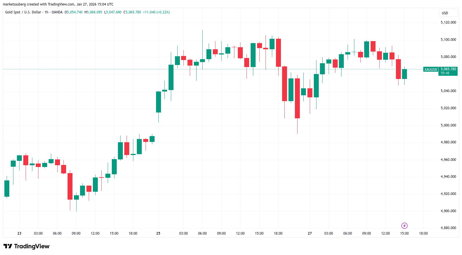 На традиционных рынках индексы S&P 500 и Nasdaq открылись небольшим ростом, а золото, по признакам, готовилось снова протестировать область $5 000 в качестве поддержки.