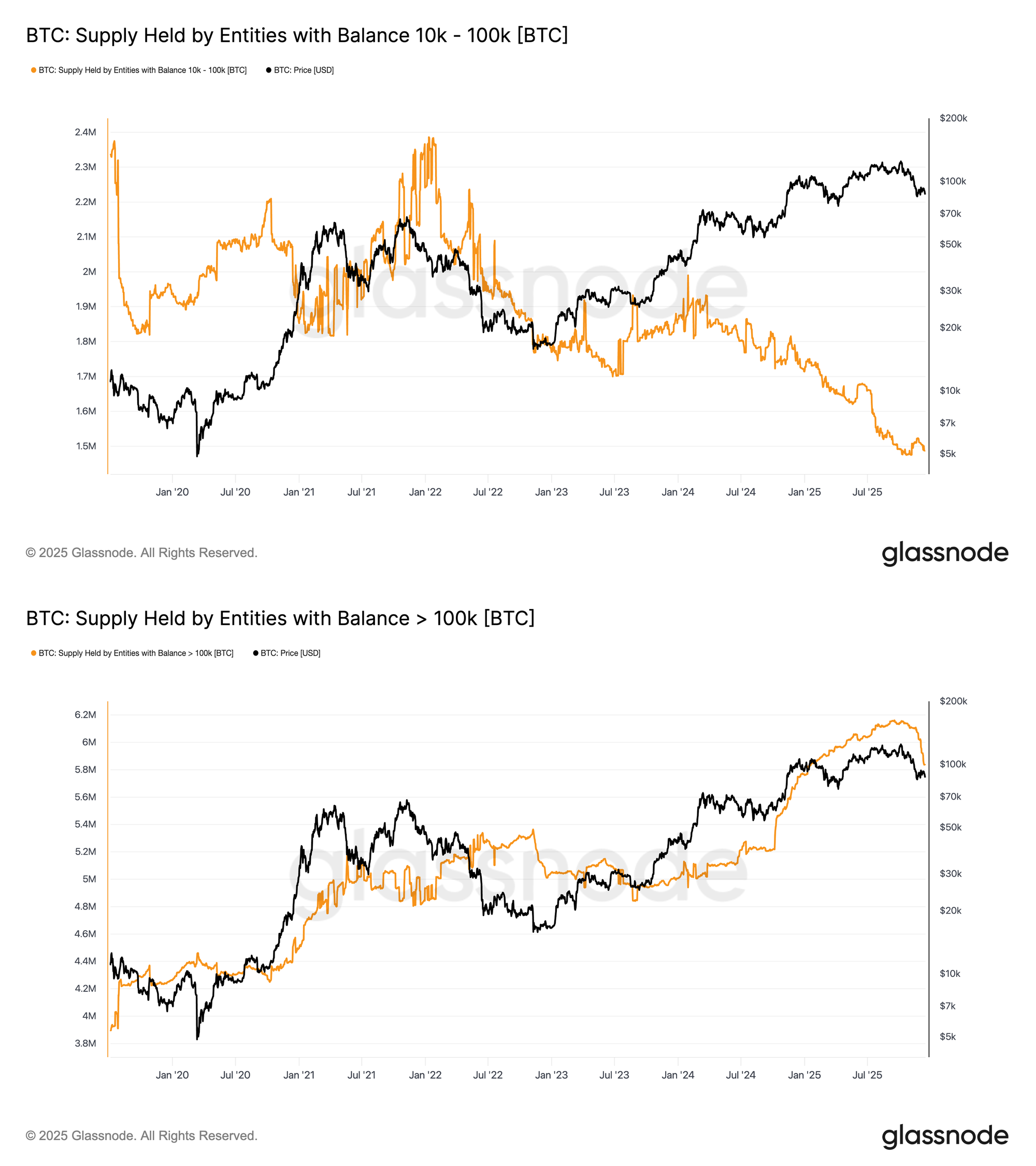 Киты, владеющие более 10,000 BTC, стали главным двигателем распродажи за последние два месяца, подчеркивая, что покупательная сила акул была недостаточной.