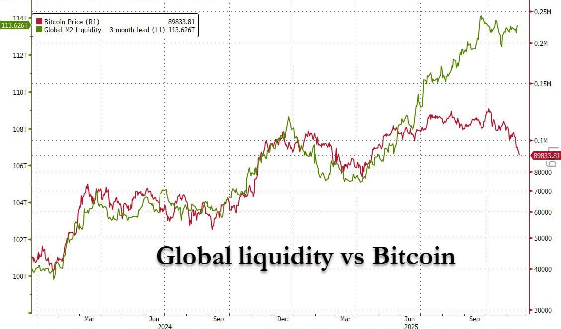 Глобальный разрыв ликвидности достигает редких значений относительно Биткойна