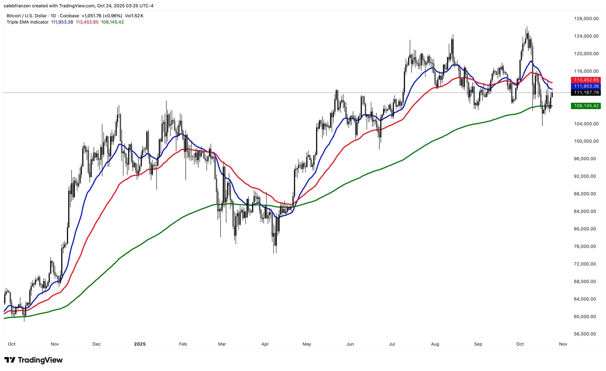 Кейлеб Франзен, создатель ресурса финансовых исследований Cubic Analytics, выделил три экспоненциальных скользящих средних (EMAs), которые теперь необходимо удержать в качестве поддержки.