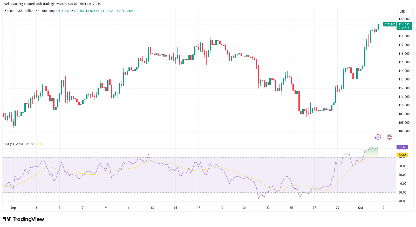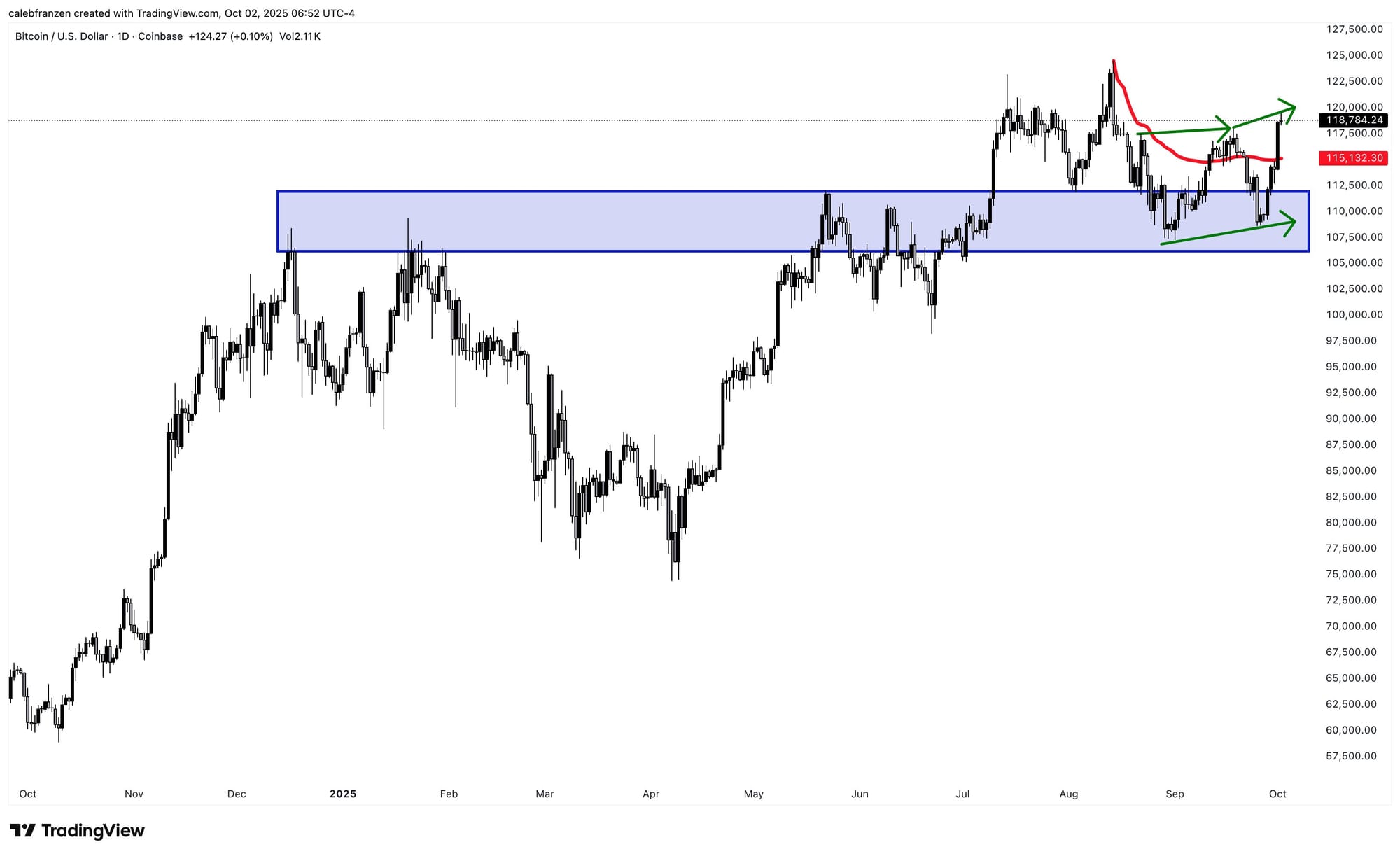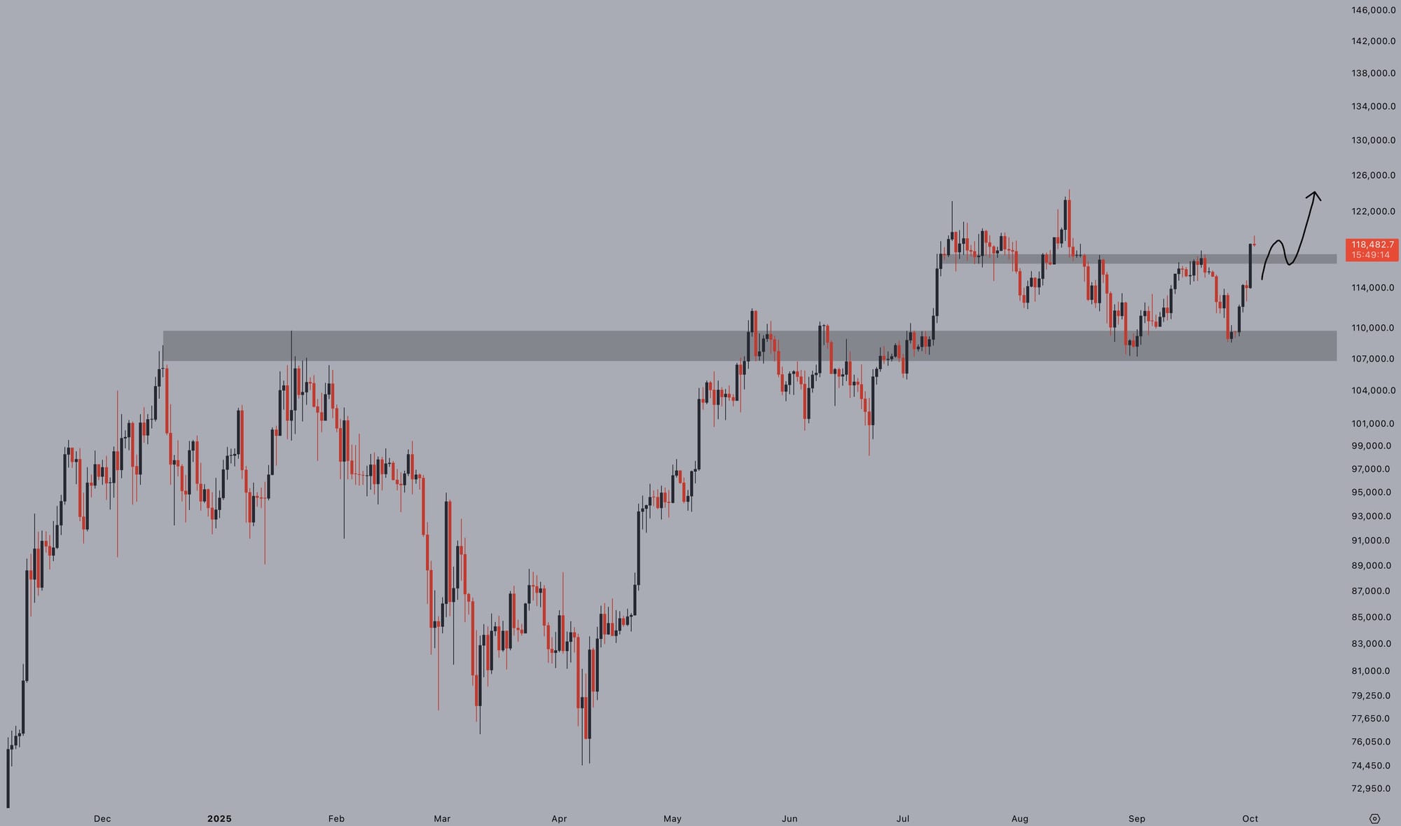 «Удержите $118k, и новые исторические максимумы будут следующими. Октябрь здесь.»