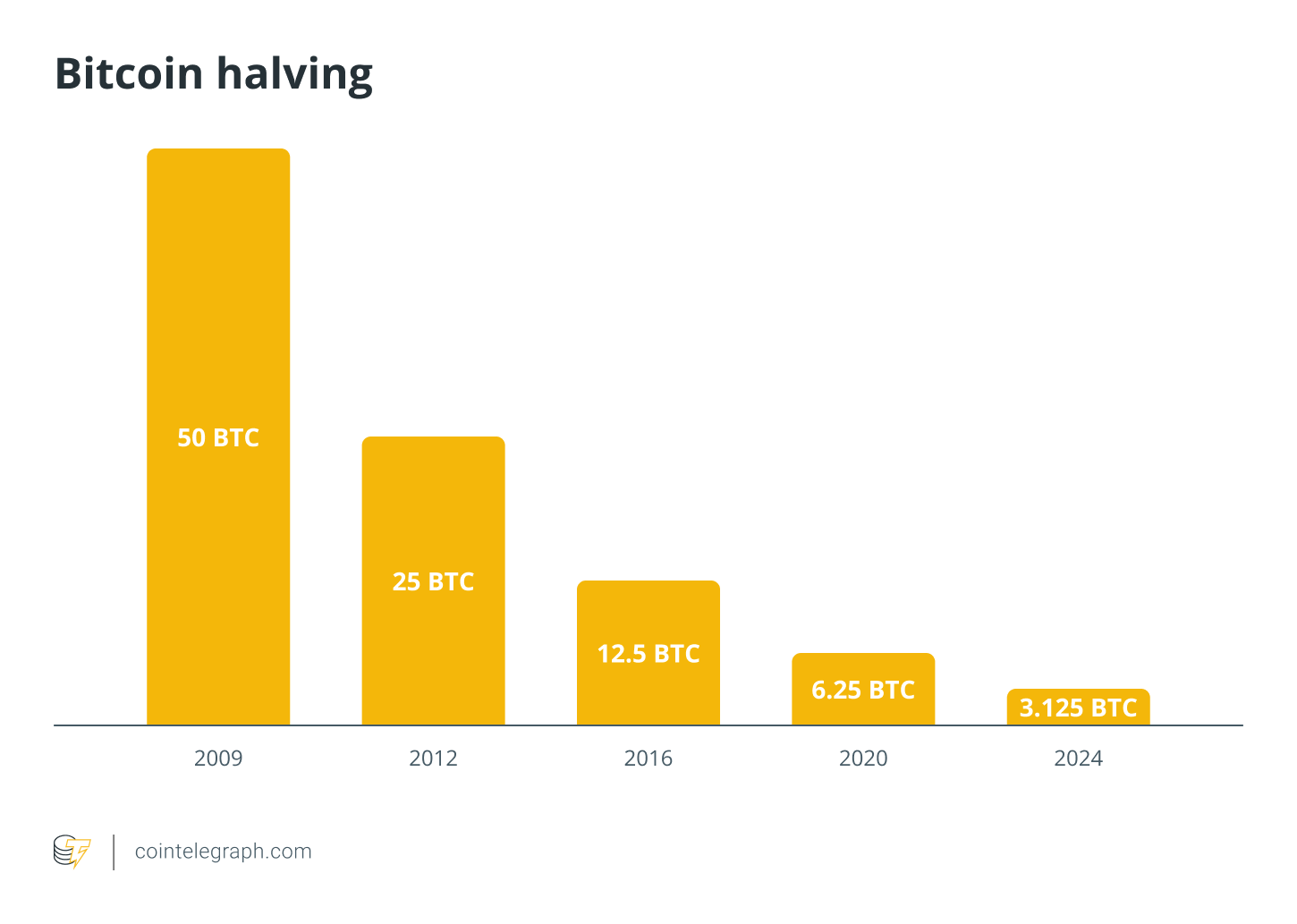 После четвертого халвинга биткойна в апреле 2024 года награда за блок снизилась с 6.25 BTC до 3.125 BTC.