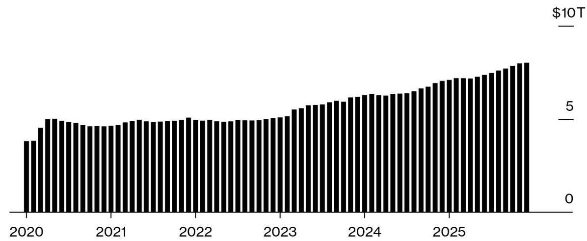 Снижение процентных ставок и увеличение системной ликвидности фундаментально подрывают спрос на долговые активы. По мере снижения ставок ФРС, доходы на новые выпуски облигаций также падают, делая их менее привлекательными для институциональных фондов. Согласно Bloomberg, сейчас в американских фондах денежного рынка находится рекордное количество в $8 триллионов.
