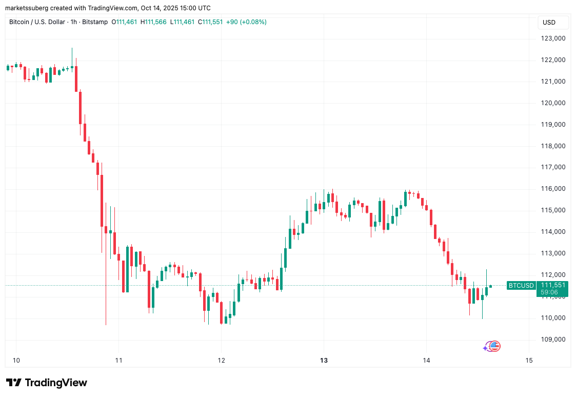Данные показали, что пара BTC/USD снизилась более чем на 3%, чтобы снова протестировать отметку $110,000.