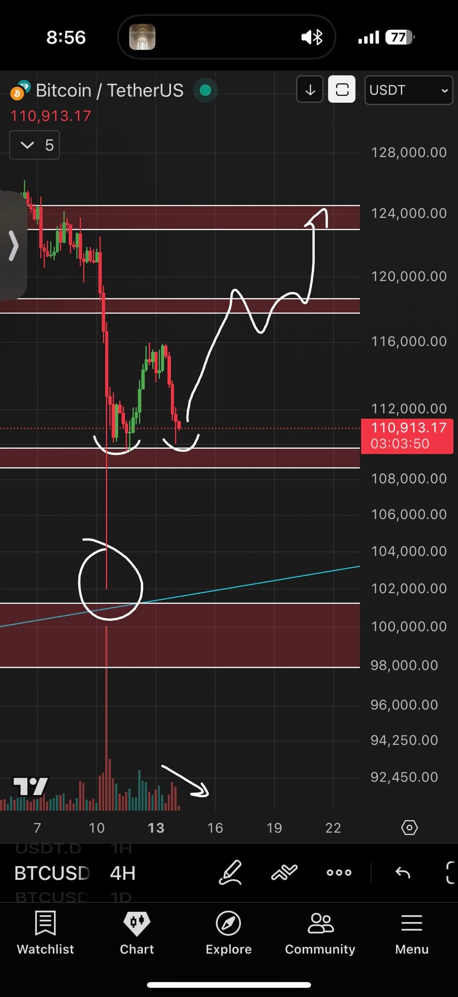 «Сейчас у нас потенциальный разворот с уменьшением объёма на основной поддержке», — написал он вместе с графиком с низкой временной шкалой.
