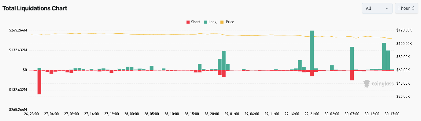 - Трейдеры, рассчитывающие на рост, пострадали, так как ликвидации длинных позиций достигли почти $1 миллиарда.