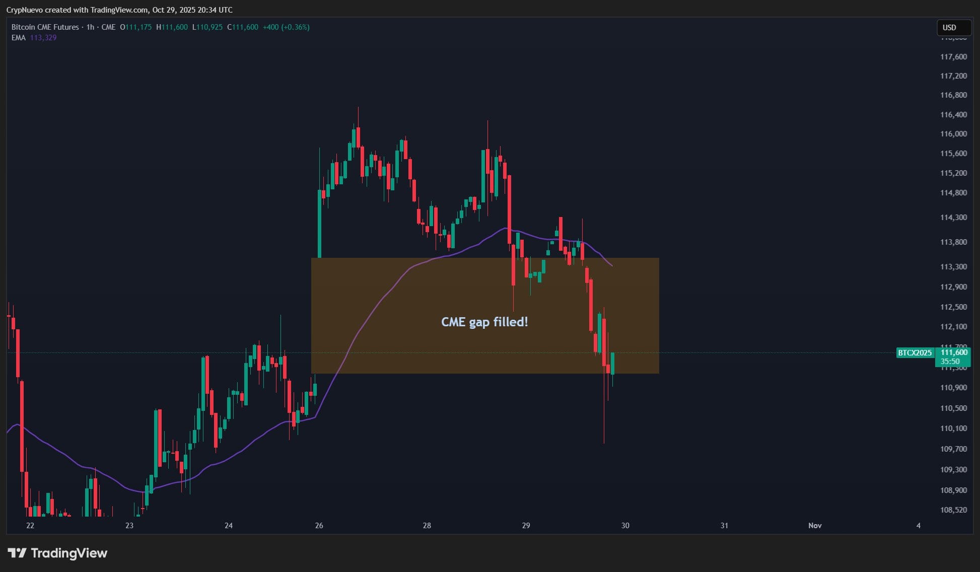 CrypNuevo отметил, что цена закрыла последний «разрыв» выходных в фьючерсном рынке биткойнов от CME Group.