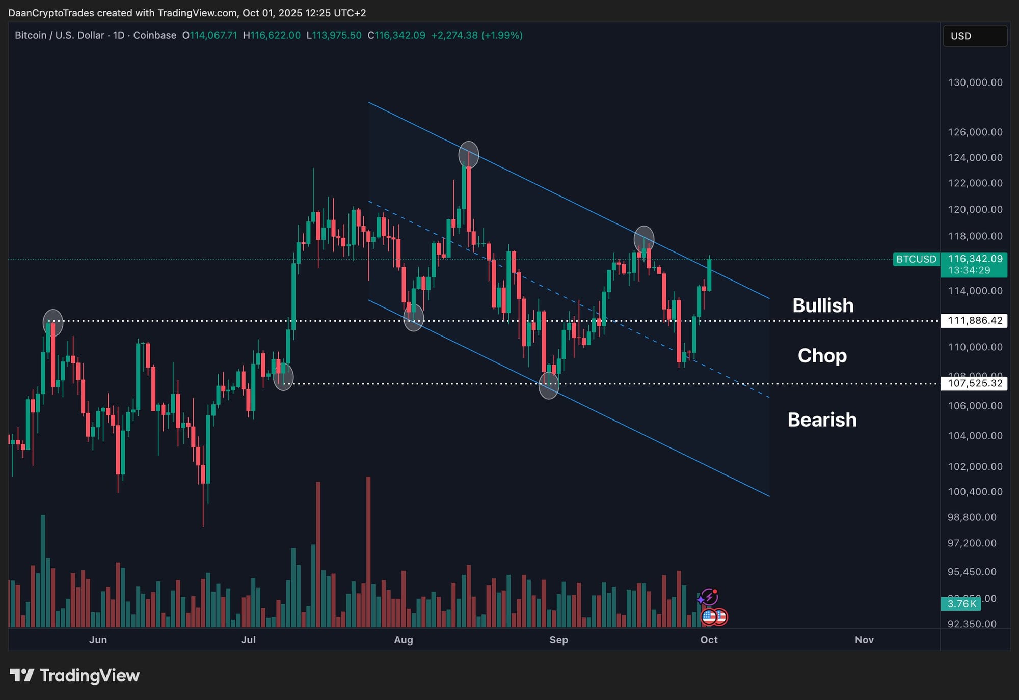 Другие сосредоточились на возможных повторных тестах поддержки, при этом торговый аккаунт Daan Crypto Trades отметил $112,000 как "ключевую краткосрочную поддержку".