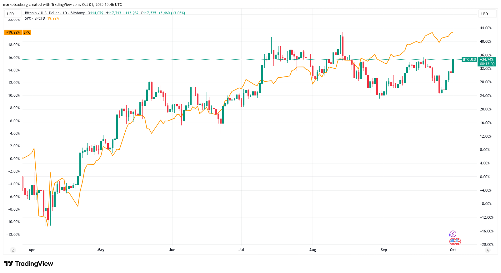 Биткоин (BTC) стремился к шестинедельным максимумам после открытия торгов на Уолл-стрит в среду, поскольку рынки проигнорировали шатдаун правительства США.