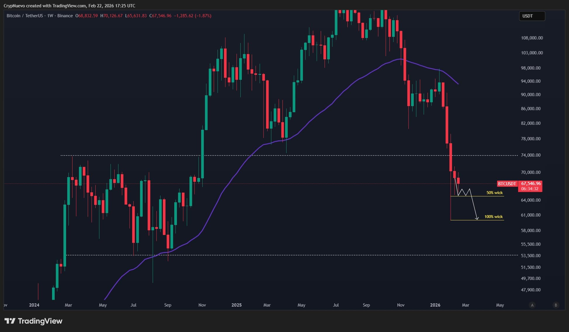 Биткоин (BTC) подходит к концу февраля на новых локальных минимумах, а цели по цене в районе $50 000 по-прежнему остаются актуальными.