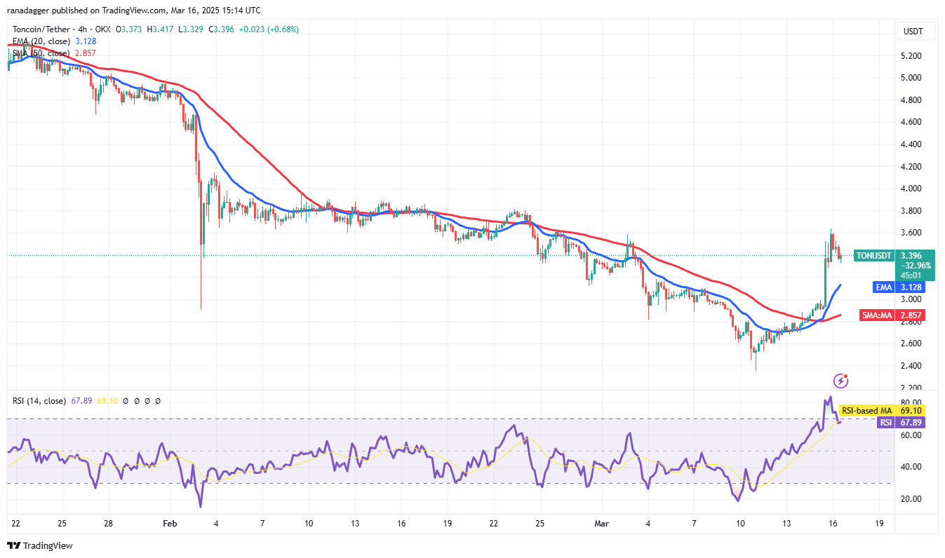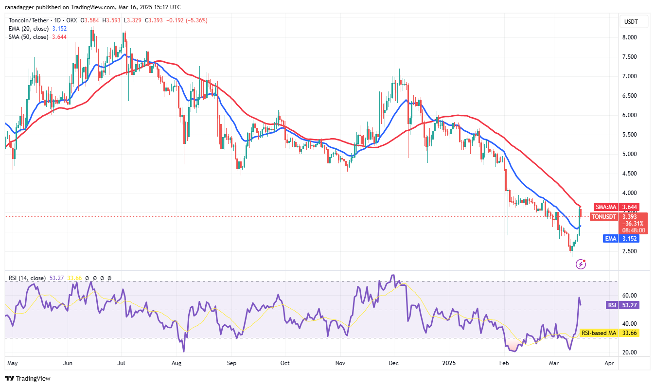 Toncoin (TON) резко вырос с уровня $2.35 11 марта и достиг 50-дневной SMA ($3.64) 16 марта.