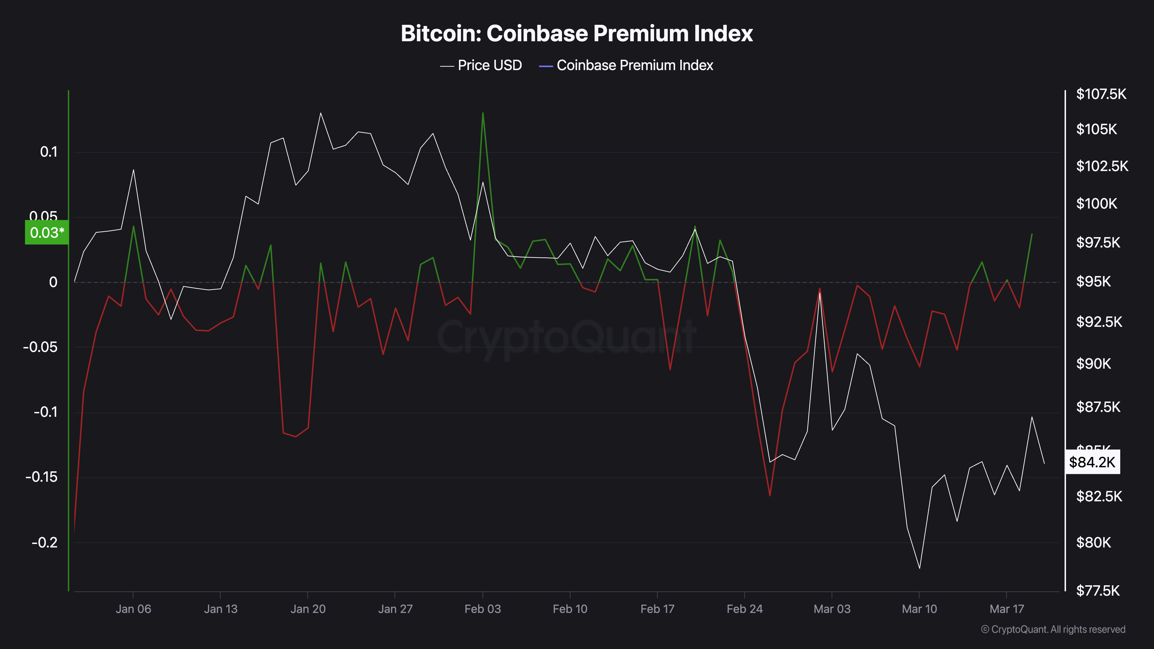 Индекс премии Биткойна на Coinbase. Источник: CryptoQuant