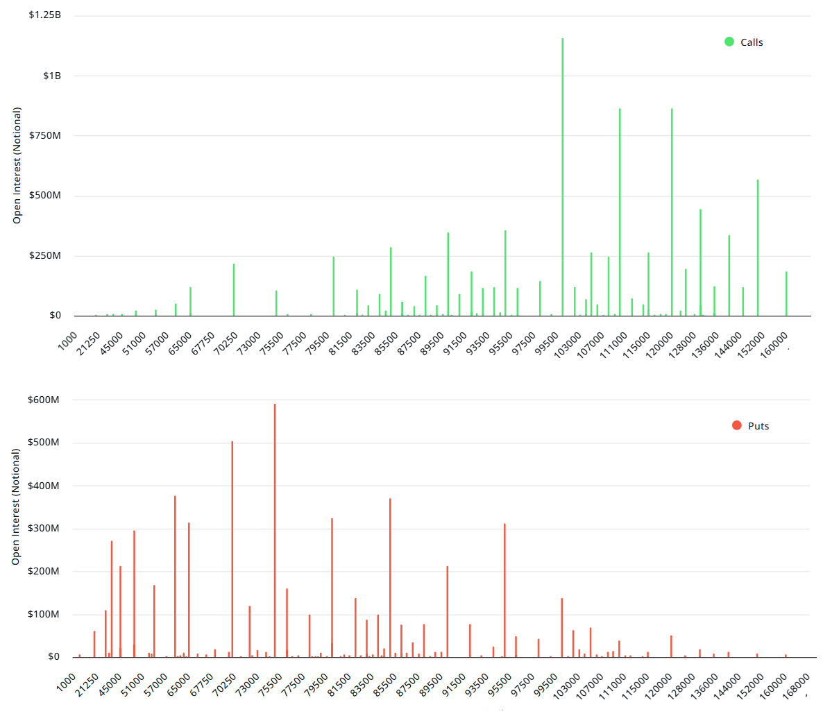 - Между $85,000 и $88,000: $3.3 миллиарда в call против $2 миллиардов в put, преимущество call на $1.3 миллиарда.