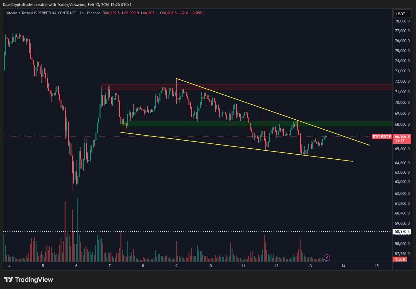 «Вчера пытались пробиться вверх, но цену резко вернули вниз у уровня $68K. Это зона, за которой стоит следить, если рынок захочет сделать следующий рывок вверх».