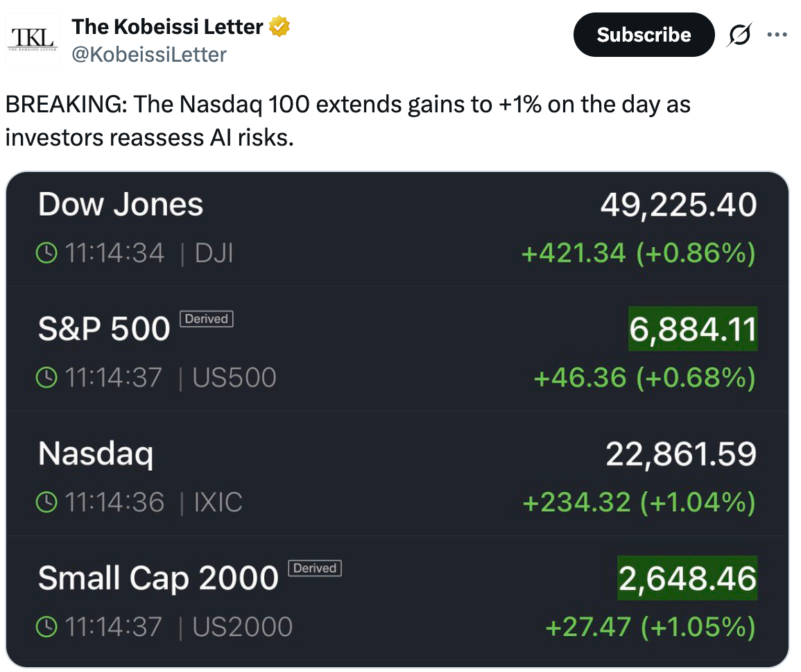 Текущее восстановление биткоина происходит параллельно с отскоком рынка акций США, где рост во многом обеспечили технологические и AI-компании.