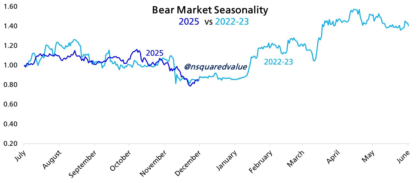 На ежедневной и месячной основе корреляция между этим годом и 2022 годом поразительна. Корреляция по суточным временным рамкам составляет сейчас 80%, в то время как месячная достигает 98%.