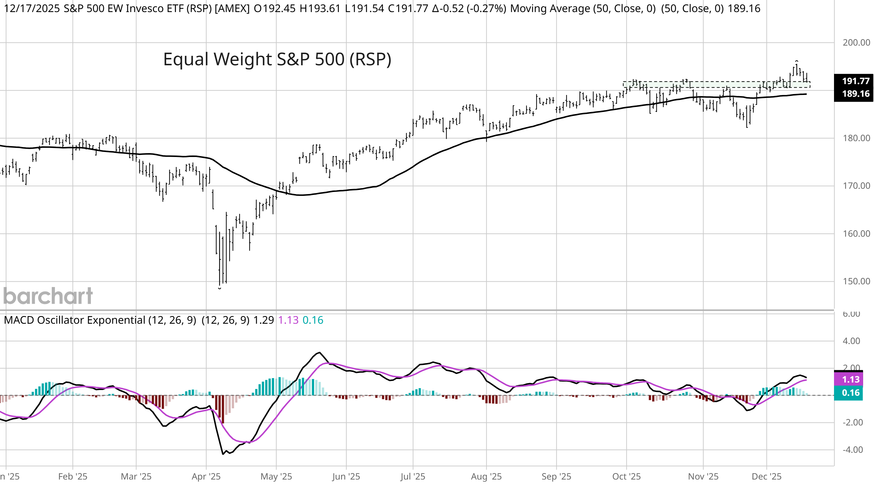 “В то время как S&P 500 торгуется слабо в последнее время, вторая половина декабря по историческим сезонным меркам обычно положительная.”