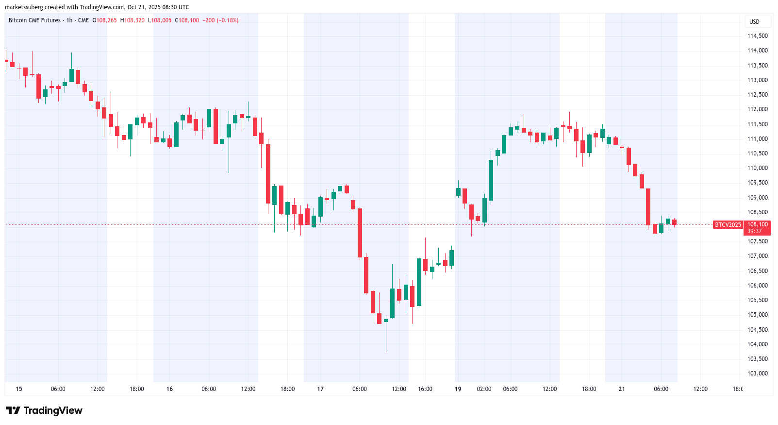Закрытие разрыва в данный момент означало бы возврат к около $107,390. На прошлой неделе фьючерсы на биткойн опустились до минимума около $103,750.
