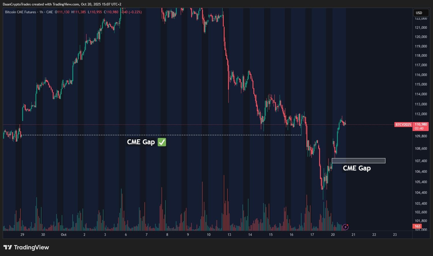 «Кроме того, мы закрыли большой разрыв на уровне $110,000 на прошлой неделе. Этот разрыв остался с конца сентября, перед тем как BTC поднялся до новых исторических максимумов.»