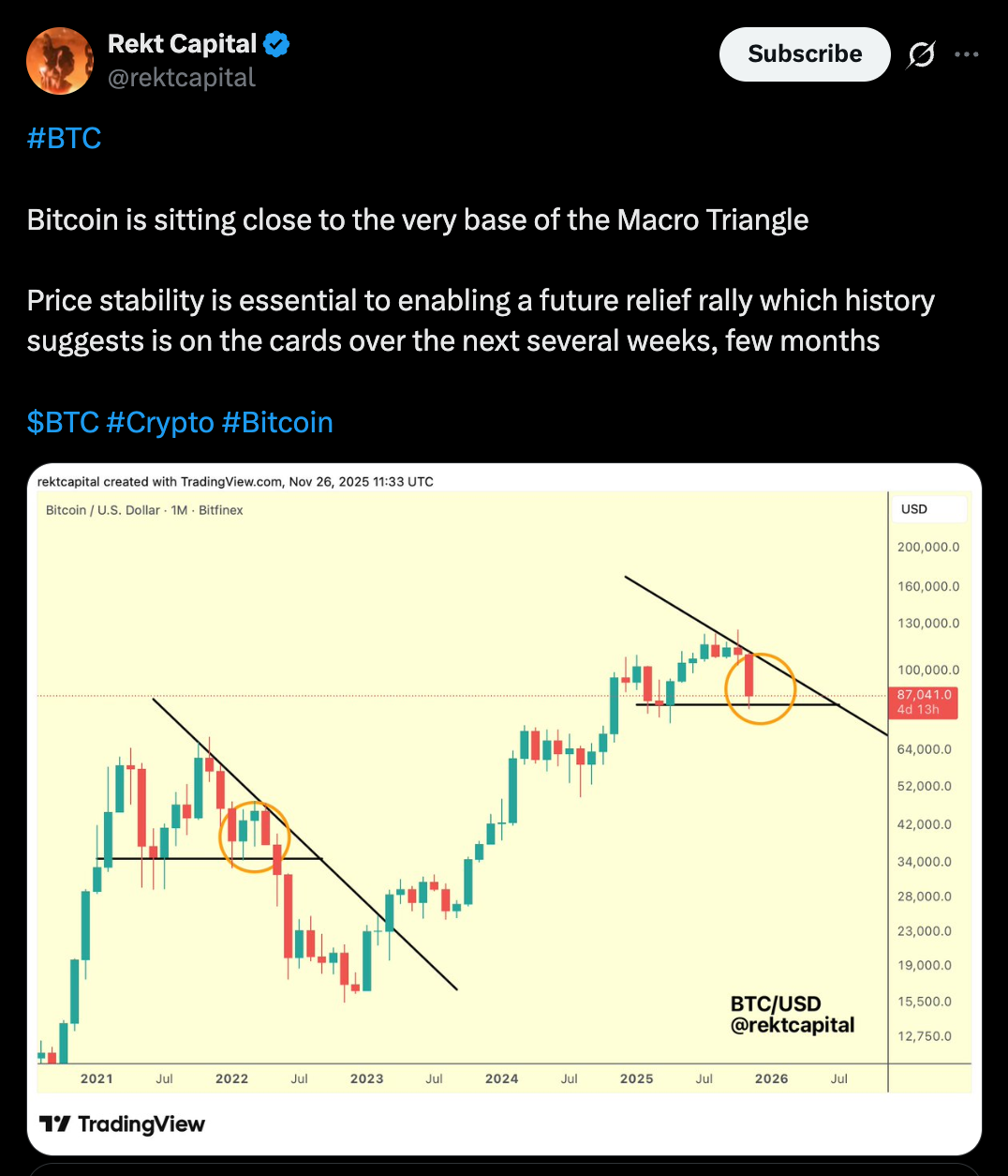 Окончательное пробитие ниже нижней линии тренда флага подтвердило бы медвежью установку, открывая путь для измеренного движения к уровню $77,400.