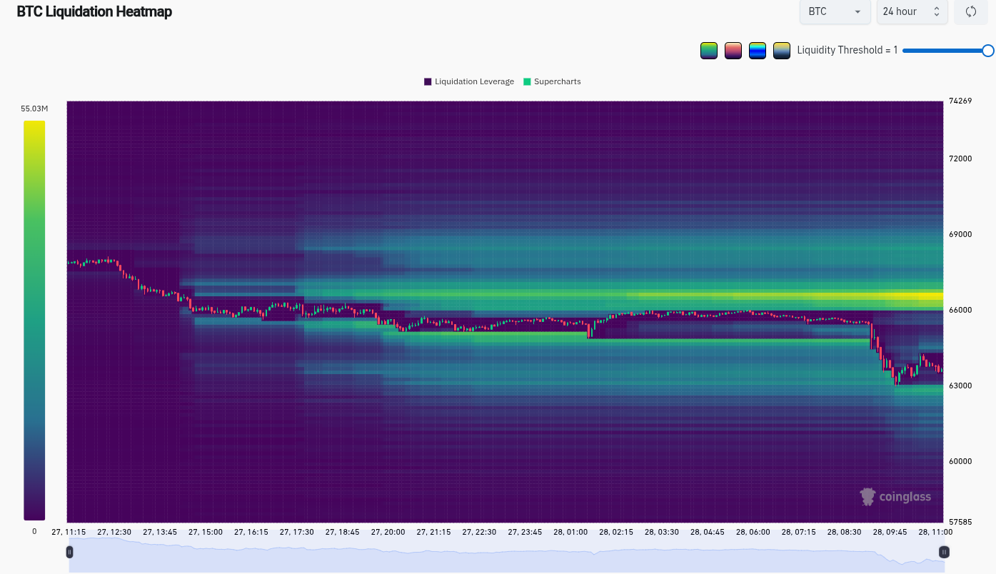 По данным TradingView, на фоне новостей цена BTC тестировала уровень $63 000.