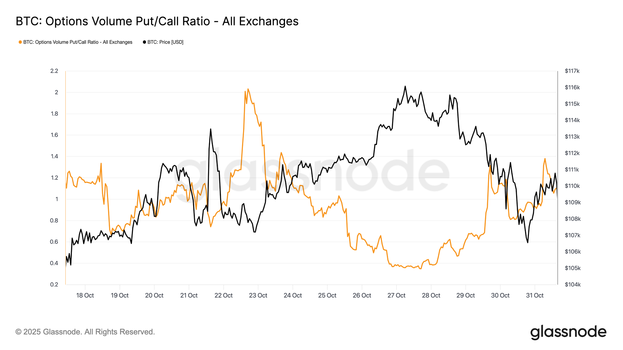 Анализируя объёмы пут-колл, Glassnode не увидел ничего обнадёживающего для быков.