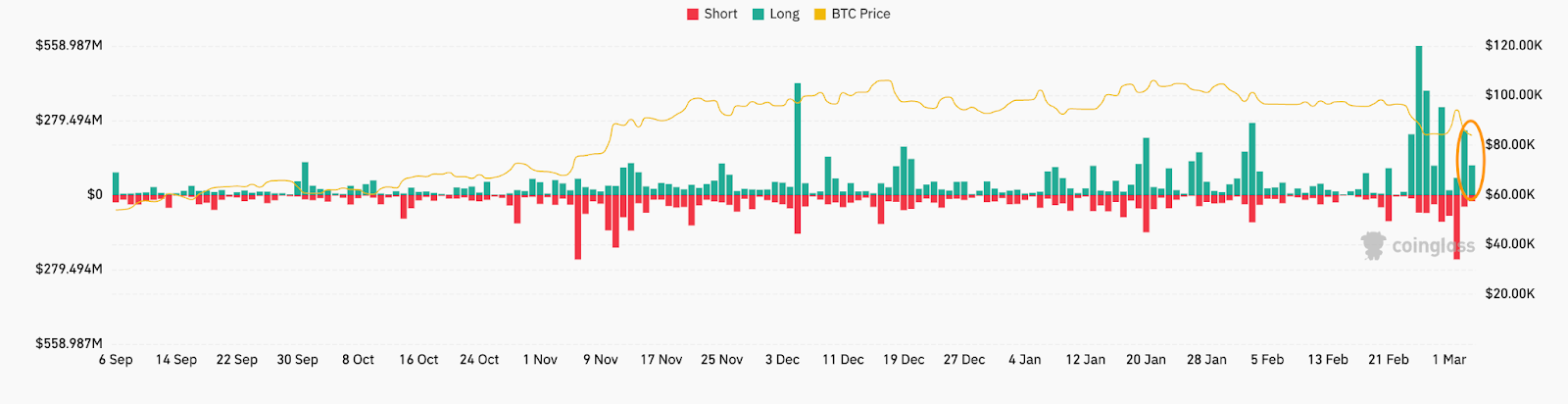 Ликвидации криптовалют (снимок экрана). Источник: CoinGlass