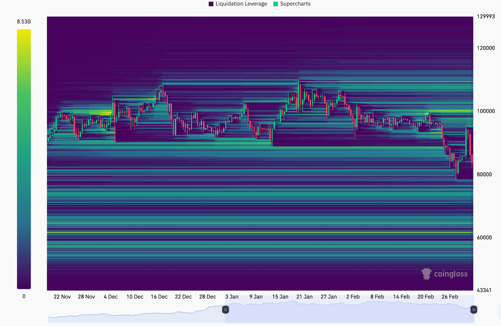Тепловая карта ликвидации BTC/USDT. Источник: CoinGlass