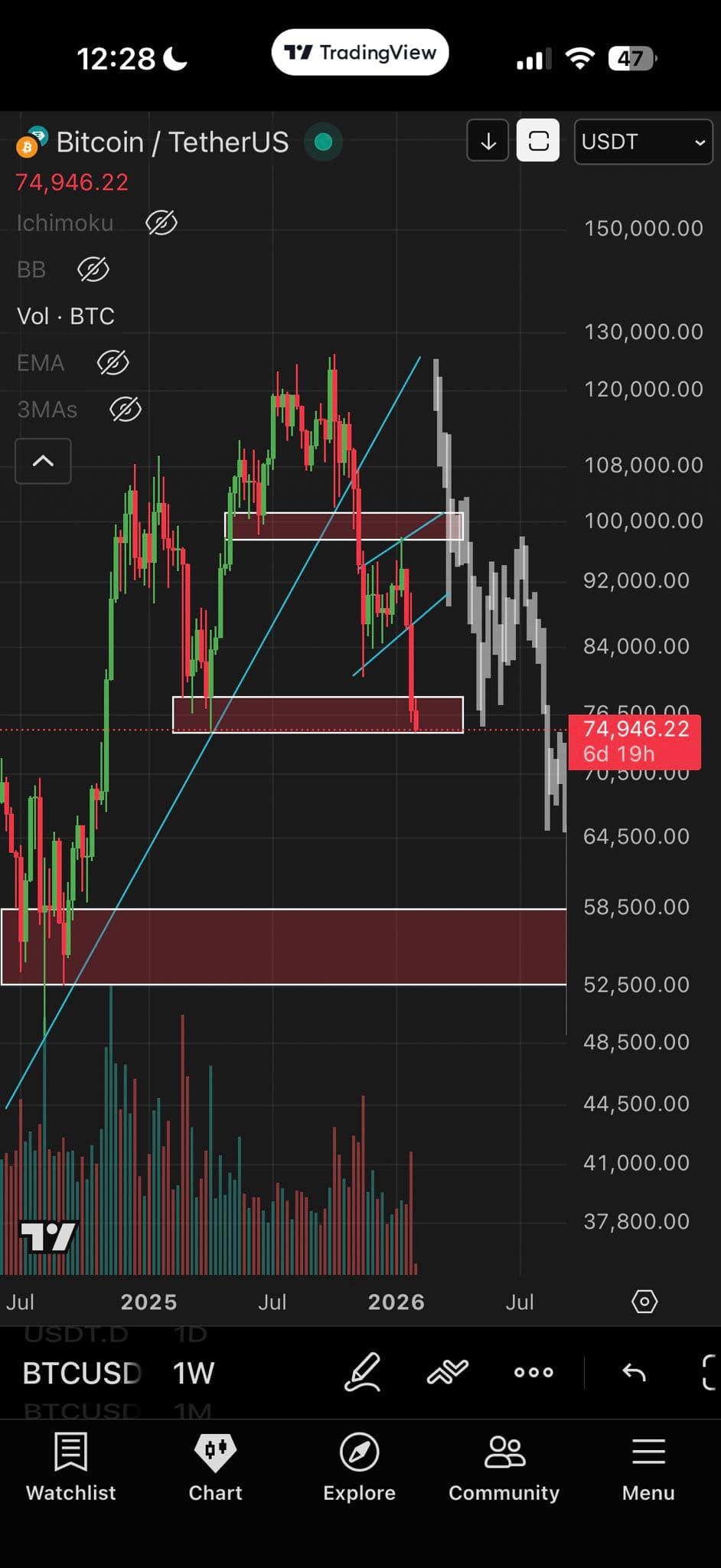 «На падении много объема — это дополнительное подтверждение медвежьего сценария. Мы в фазе медвежьего рынка, и я жду $50 000 и, возможно, ниже».