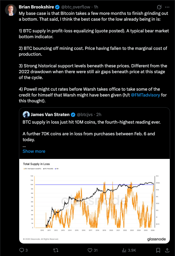Брукшир также отметил, что на цену BTC могут повлиять будущие снижения ставки ФРС США — как при Джероме Пауэлле, так и при потенциальном будущем председателе Кевине Уорше.