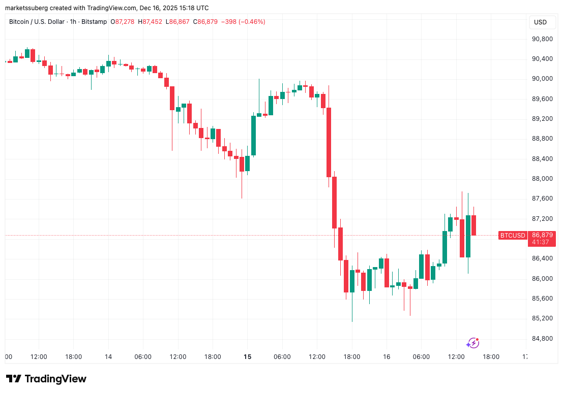 После падения почти до $85,000 накануне, напряжение усилилось, когда покупатели стремились избежать очередной "манипулятивной" распродажи во время торгов в США.