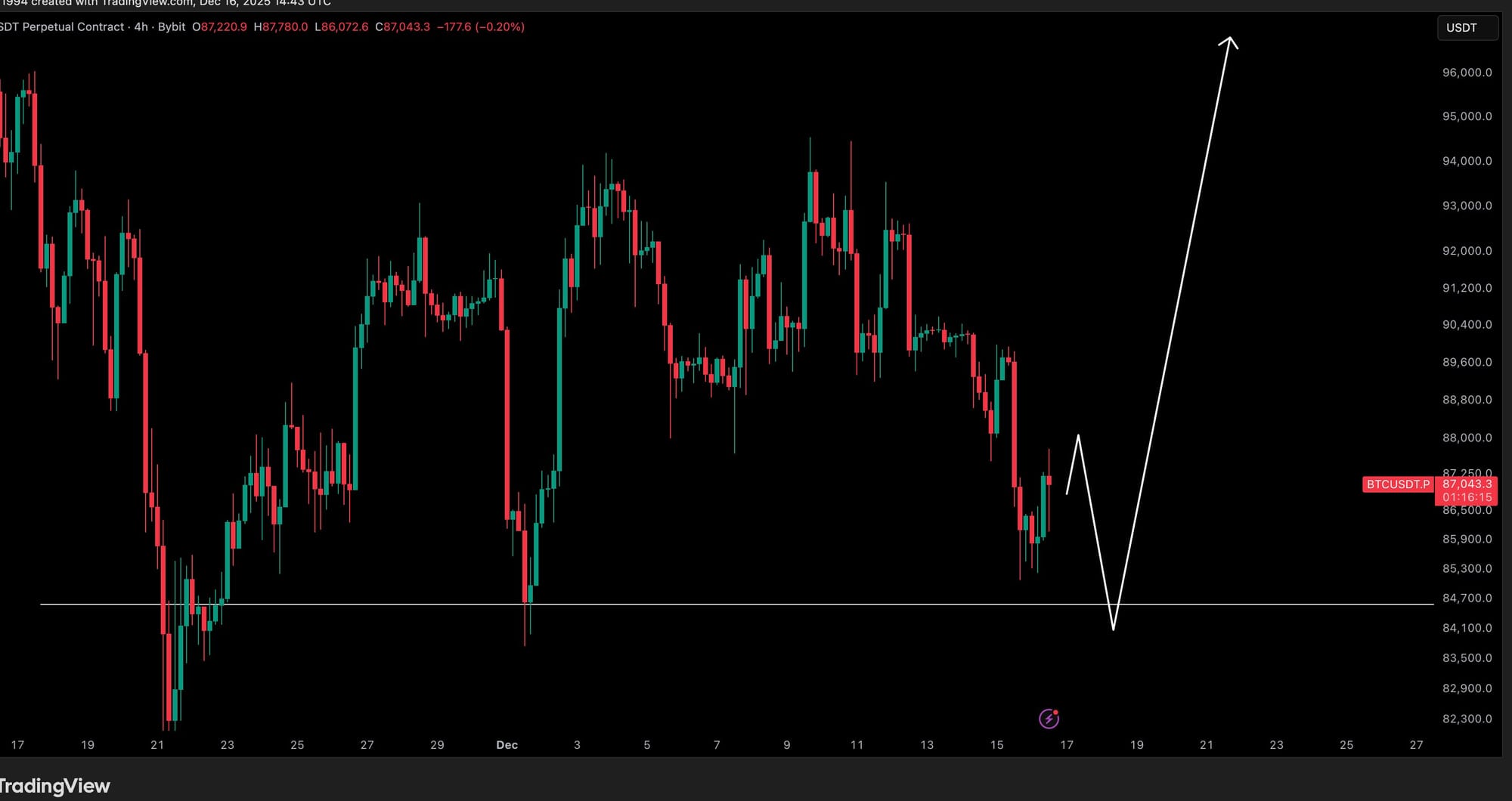 “Эта реакция для меня является посредственной, и я думаю, что если мы упадем ниже до области $84,000, мы получим лучшую реакцию для длинной позиции оттуда,” сообщил Crypto Tony своим подписчикам на X.