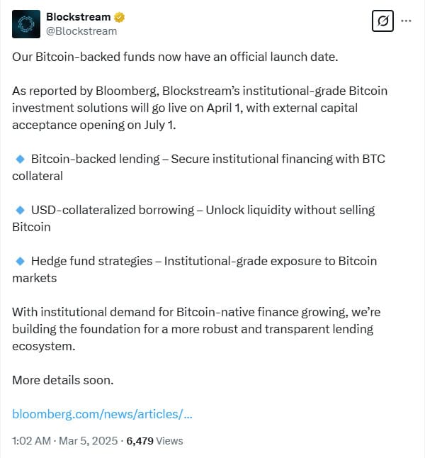 Blockstream запускает фонды кредитования Bitcoin с многомиллиардными инвестициями