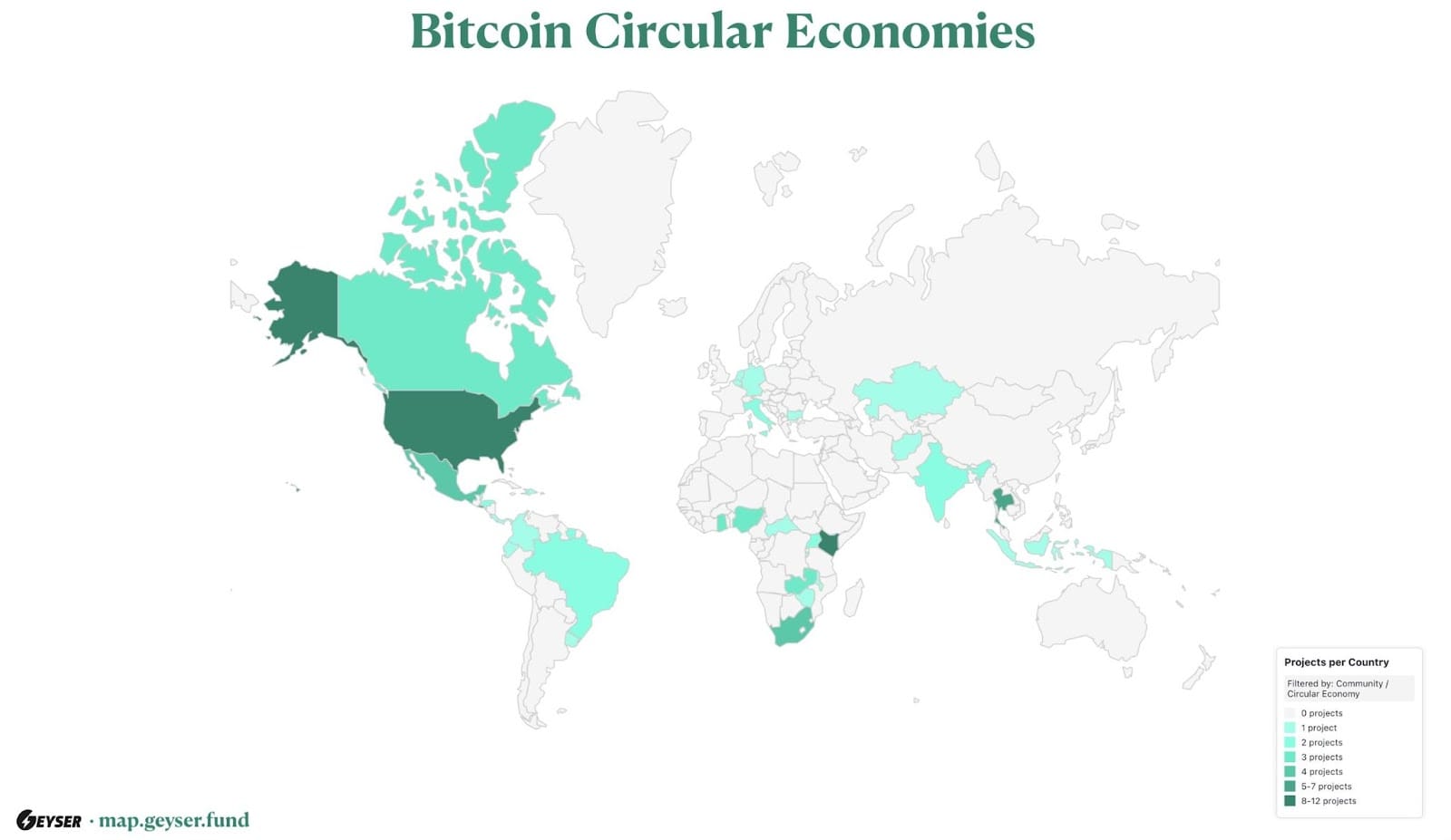 Круговые экономики биткоина распространяются по всему миру. Источник: Geyser Fund