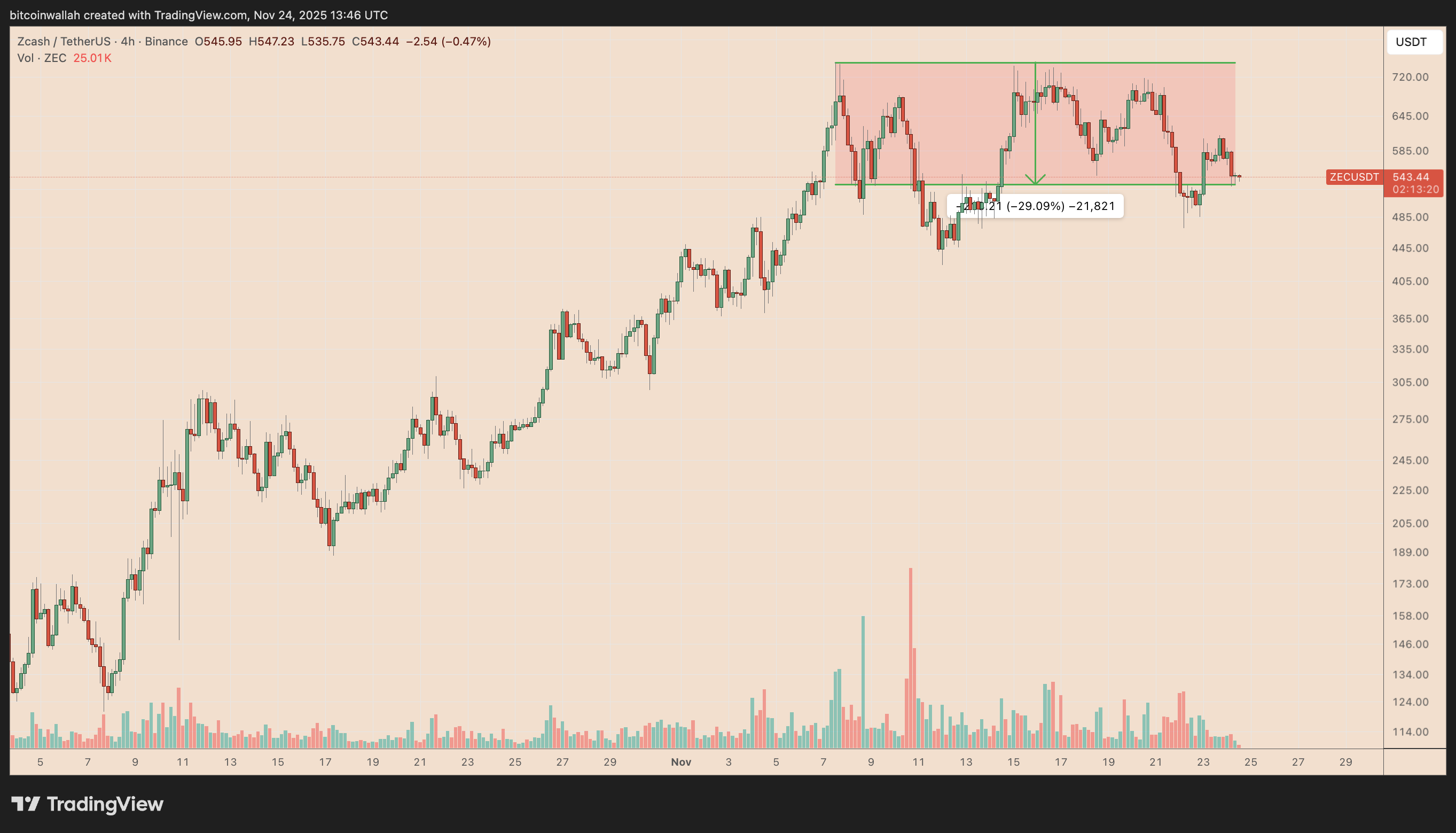 Zcash (ZEC) потерял около 30% от своего пика в $750, достигнутого в ноябре, что вызывает опасения о возможных дальнейших убытках. Некоторые аналитики предупреждают о вероятной схеме "памп и дамп".