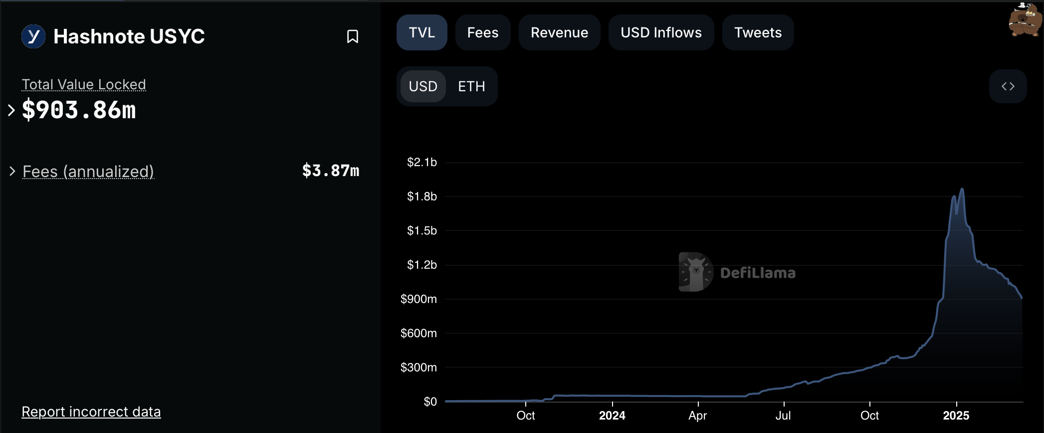 Hashnote, приобретенный компанией Circle в январе 2025 года, является эмитентом USDY, крупнейшего токенизированного фонда казначейских и денежных рынков с общей заблокированной стоимостью (TVL) в $900 миллионов, по данным DefiLlama. TVL фонда снизился с $1,9 миллиарда по состоянию на 7 января.