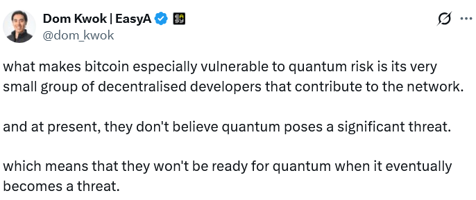Опасения вокруг квантовых технологий в последние месяцы подпитывали FUD, и критики предупреждали, что компрометация криптографии может поставить под угрозу сеть, которая сейчас защищает стоимость около $1,4 трлн.