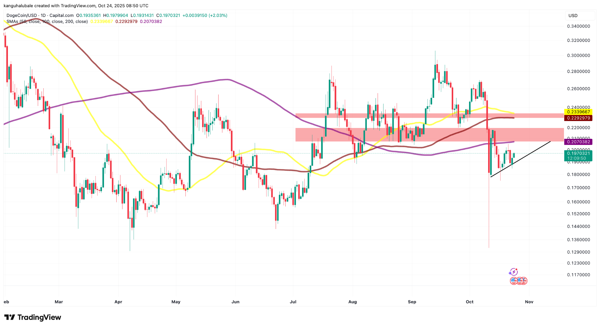 Бычий сценарий Dogecoin зависит от того, сможет ли пара DOGE/USD превратить сопротивление между $0.20 и $0.22 в поддержку.