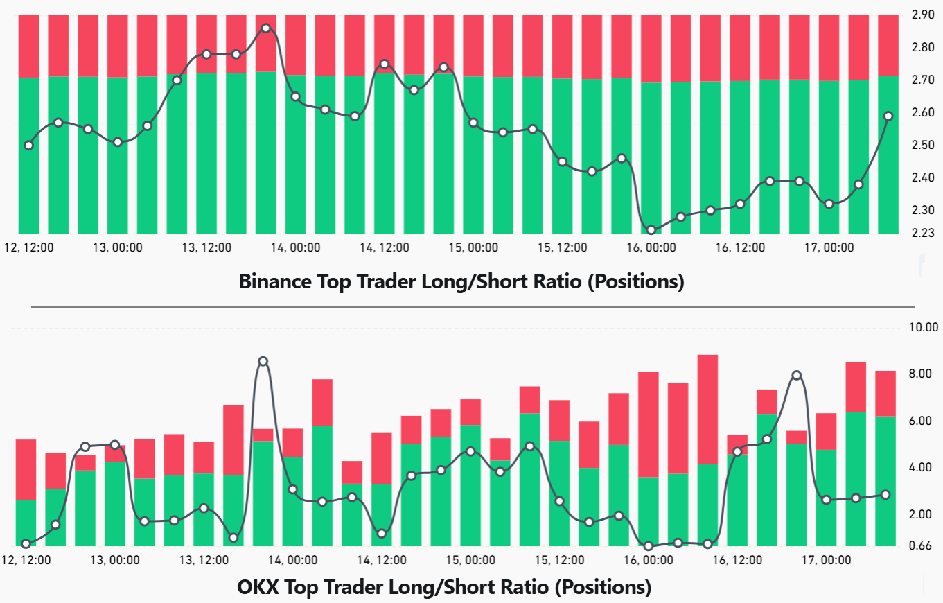 Топ-трейдеры на Binance уменьшили свои бычьи ставки (лонги) между вторником и четвергом, но затем развернулись, увеличив свою экспозицию на ETH несмотря на продолжающееся ослабление цен. В отличие от этого, топ-трейдеры на OKX пытались правильно таймировать рынок, увеличивая свои позиции около уровня $3,900, но в итоге вышли, когда цены упали до $3,700 в пятницу.