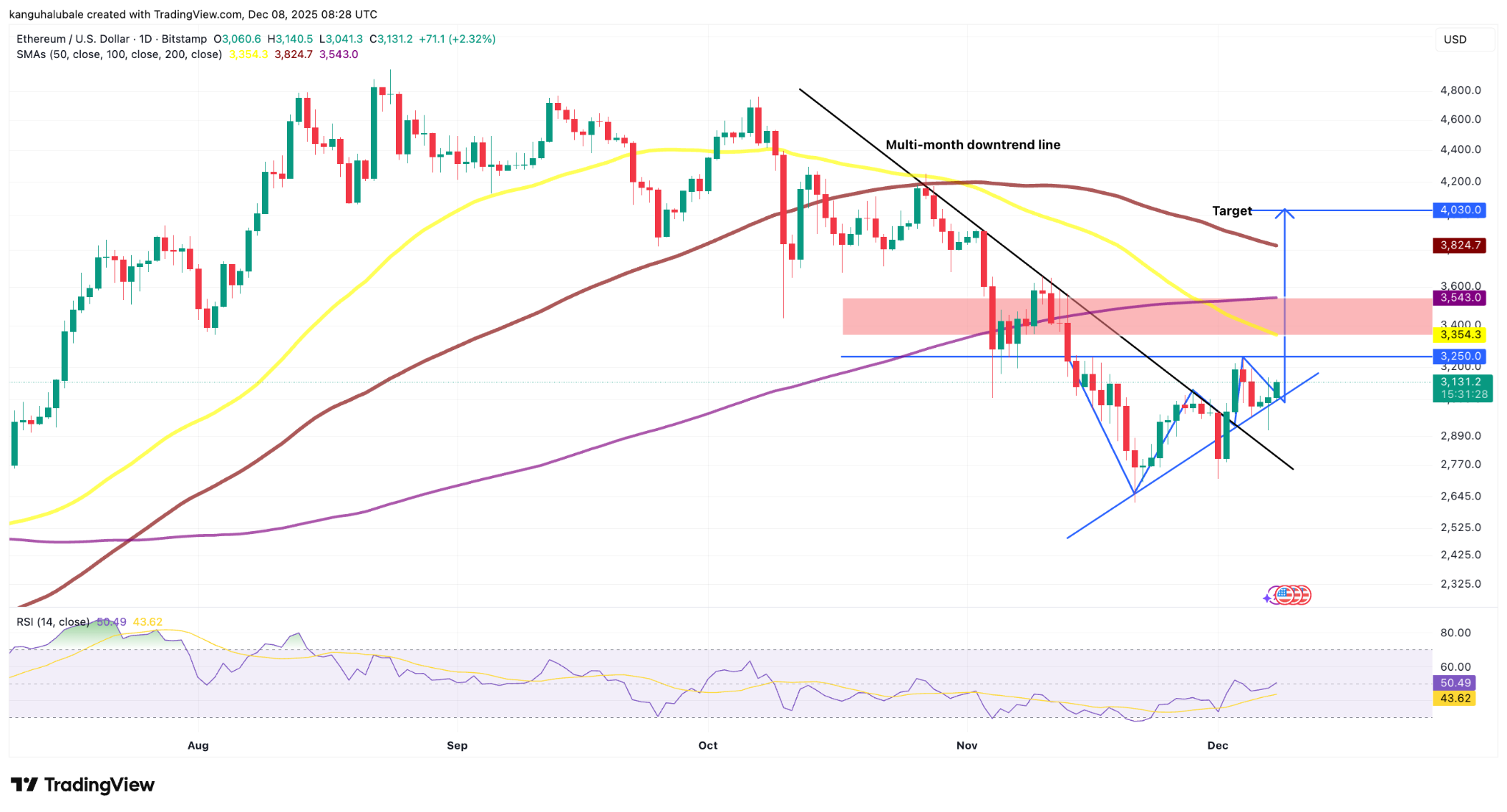 Это ставит цель прорыва цены эфира на уровне около 4 020 долларов, что на более чем 28% выше текущего уровня.